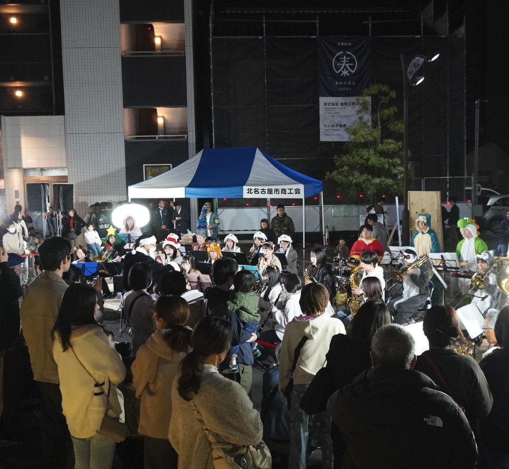西春駅西ロータリーを封鎖し、歩行者天国にして点灯式イベントを開催しました。今回もたくさんの方々にご来場いただき、点灯カウントダウンや各種団体によるステージイベント、オーケストラによるコンサートなどで大いに盛り上がりました。